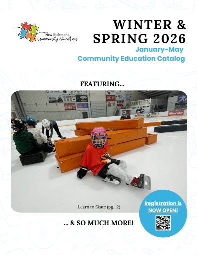 Community Education New Richmond Community Education is an extension and service provided by the School District of New Richmond. The educational, recreational, and social opportunities provided by Community Education for all ages make the School District of New Richmond truly a community-centered school district. About our classes: Our classes are self-supporting. The cost necessary to conduct classes is generated by the users. We strive to provide a variety of classes and programs for everyone in the community. If you have a request for a class, please contact us. We will attempt to secure a satisfactory instructor. If enough participants enroll to pay the costs of the program, the request for a class becomes a reality!REGISTRATION IS LIVE ON ELEYO! Questions on how to register on Eleyo? Click here! The Winter & Spring 2026 Catalog is now available! To view it online, click here. Contact Community Ed District Office837 E 11th StreetNew Richmond, WI 54017 P: 715-243-7421 nrcommed@newrichmond.k12.wi.usConnect with us on Social Media!Facebook: facebook.com/nrcommedInstagram: instagram.com/nrcommed